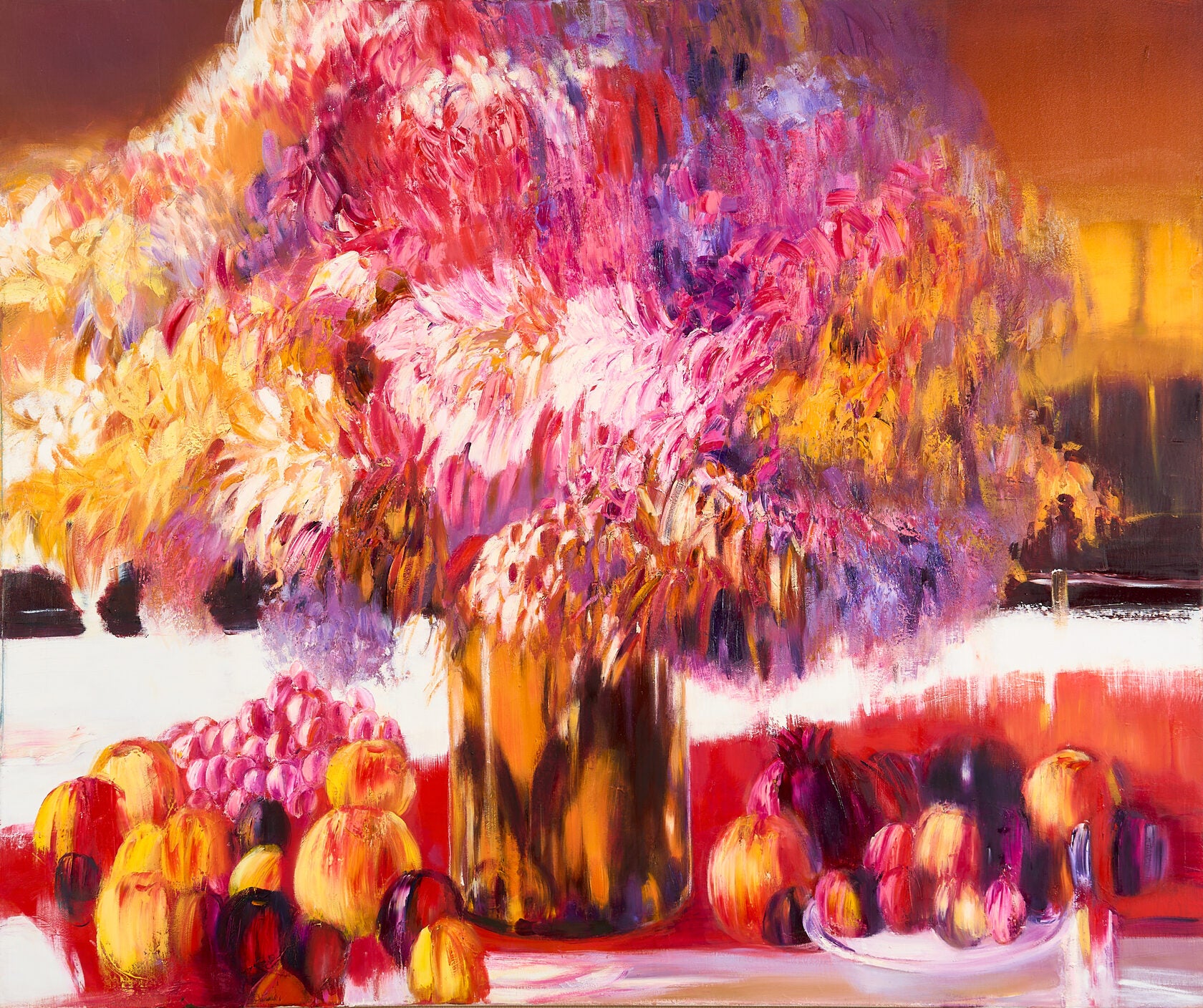 Larisa Blokhina's August is a memory of a vivid, tranquil, sunny day at the end of summer. Lush flowers, abundance of fruit, and a room filled with daylight. The still life genre implies the depiction of inanimate objects, which are forever frozen on the canvas. However, the artist's expressionist style brings the objects to life and fills them with motion. We feel the August heat, the breeze from the window, swaying of flowers, bright white tablecloth, and glossy fruit. At the same time, the painting conveys nostalgia, the natural change of seasons, and the arrival of autumn.